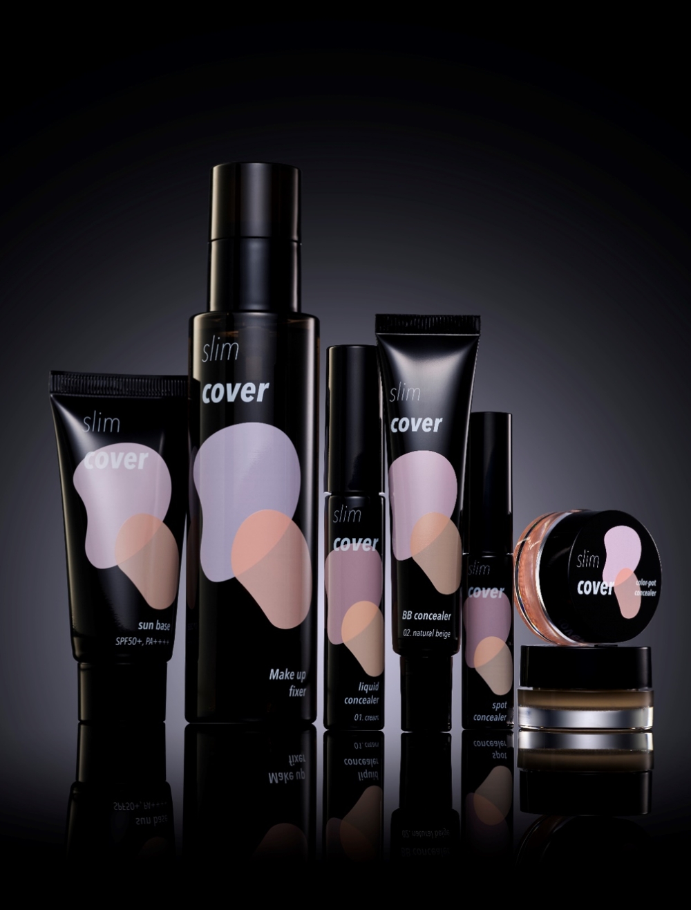 이미지 확대보기슬림커버는 피부에 얇고 가볍게 밀착되는 베이스 메이크업 라인이다. 소량으로도 피부 결점을 강력하게 커버해주는 제품들로 구성했다. 균일하지 않은 피부톤, 다크서클, 잡티 등을 쉽고 간편하게 보완해줄 수 있는 컨실러 4종과 선베이스, 픽서까지 총 6가지 종류가 있다.