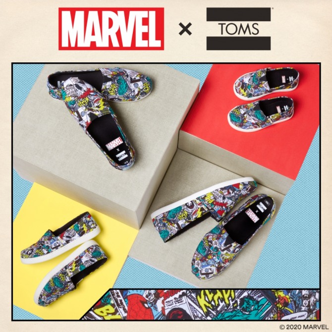 탐스와 마블의 협업 제품은 브랜드 대표 아이템인 슬립온 제품 ‘알파가타’와 끈이 있는 스니커즈형 제품 ‘트래블라이트’로 구성됐다. 온 가족이 마블을 즐길 수 있도록 남성용 1종, 여성용 2종, 아동용 1종, 유아용 1종으로 출시됐다.