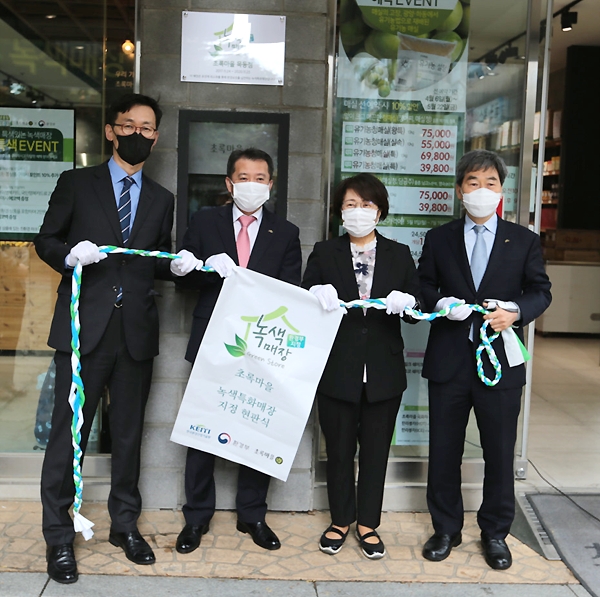 이미지 확대보기초록마을은 지난 19일 환경부와 함께 ‘녹색특화매장’을 오픈하고 초록마을 목동점에서 녹색특화매장 시범운영 기념행사를 열었다고 20일 밝혔다.