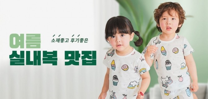 대표적인 천연 냉감 소재인 인견으로 제작한 실내복으로는 슬리피헤드 키즈가 남아용과 여아용 5부 쿨내의 8종을 5900원에 선보인다. 마밤과 맘푸는 4~10세 아이들이 입을 수 있는 레이온 인견 5부 상하세트 8종을 50% 할인 판매한다.