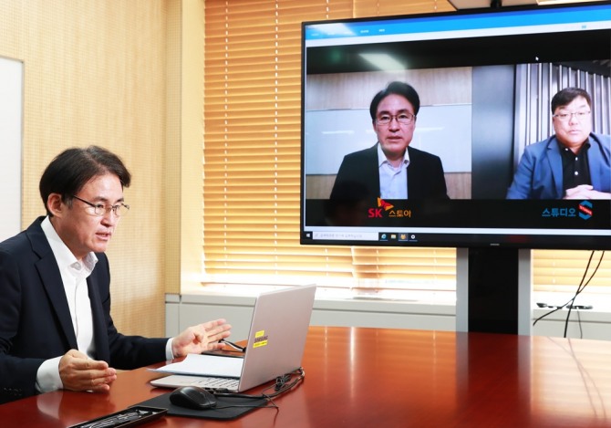 이에 SK스토아는 스튜디오S와 미디어커머스 관련 사업을 확대하기 위해 업무 협약을 체결했다. 협약식은 ‘생활 속 거리 두기’ 지침을 고려해 SK브로드밴드 화상회의 서비스 ‘스마트 콘퍼런스’를 활용해 온라인으로 이뤄졌다.
