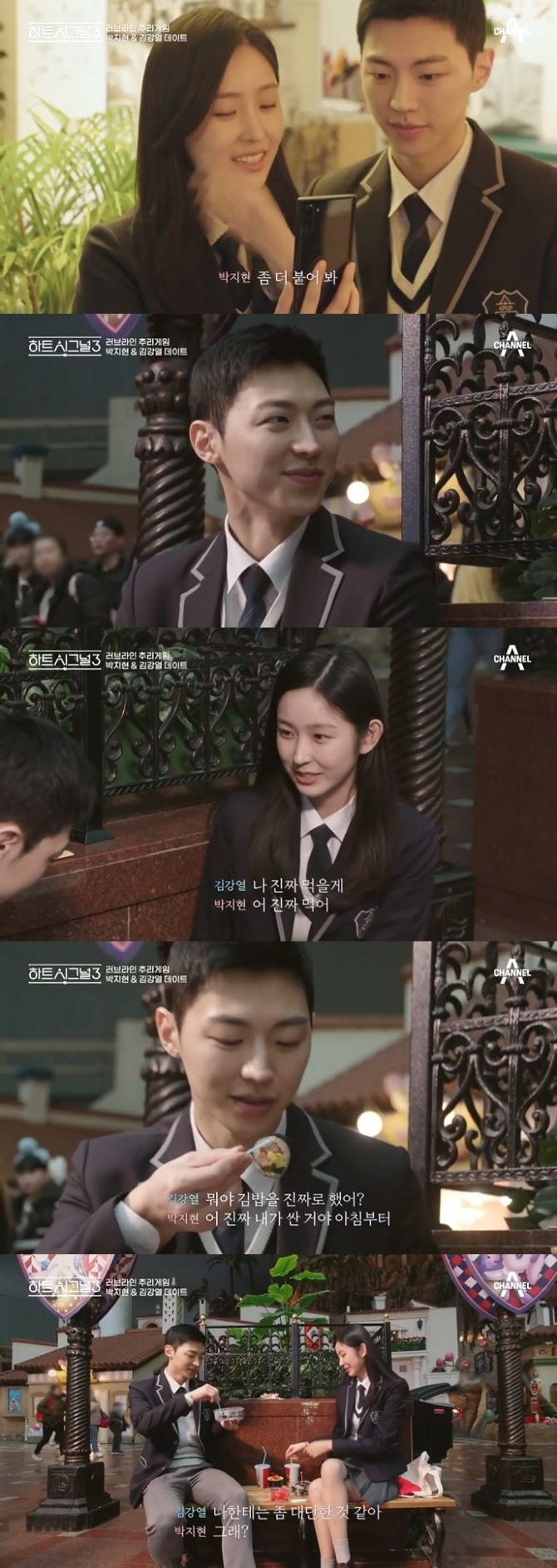 27일 방송된 채널 A 러브라인 추리게임 '하트시그널 시즌3' 9회에는 김강열이 박지현과 1:1로 놀이동산에서 교복 데이트를 하는 모습이 그려졌다.