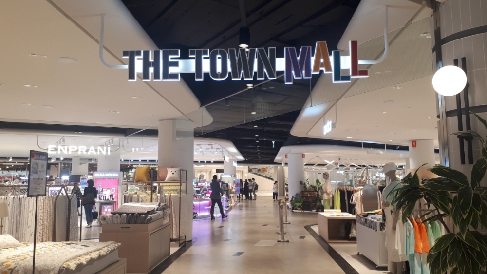 원래 이 공간은 이마트의 생활용품 판매대와 계산대가 있던 곳이다. 비식품 판매 구역 면적이 약 7분의 1로 축소되고 임대매장(테넌트)이 전체 면적의 70%(4100평, 1만3553㎡)로 확대되면서 이마트는 더 타운 몰 뒤편 공간으로 옮겨졌다. 총 3층에 걸쳐있던 판매 매장은 1‧2층으로 압축됐고 3층은 주차장으로 개편됐다.