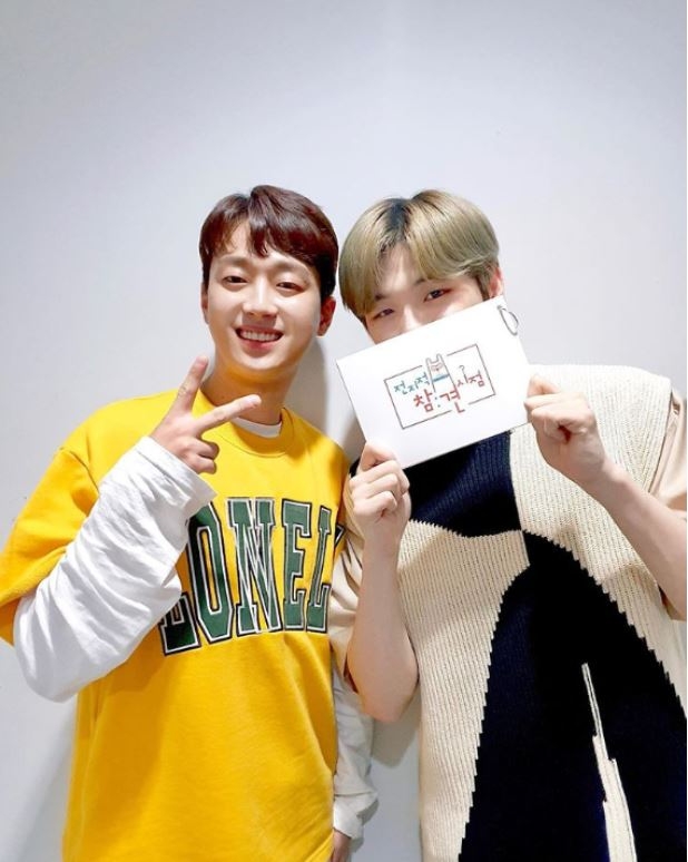 공개된 사진 속에는 MBC 예능 프로그램 ‘전지적 참견시점’ 녹화장에서 만난 이찬원과 강다니엘의 모습이 담겨 있다. 1996년생 동갑내기인 두 사람은 어깨를 맞대고 미소 짓고 있다.