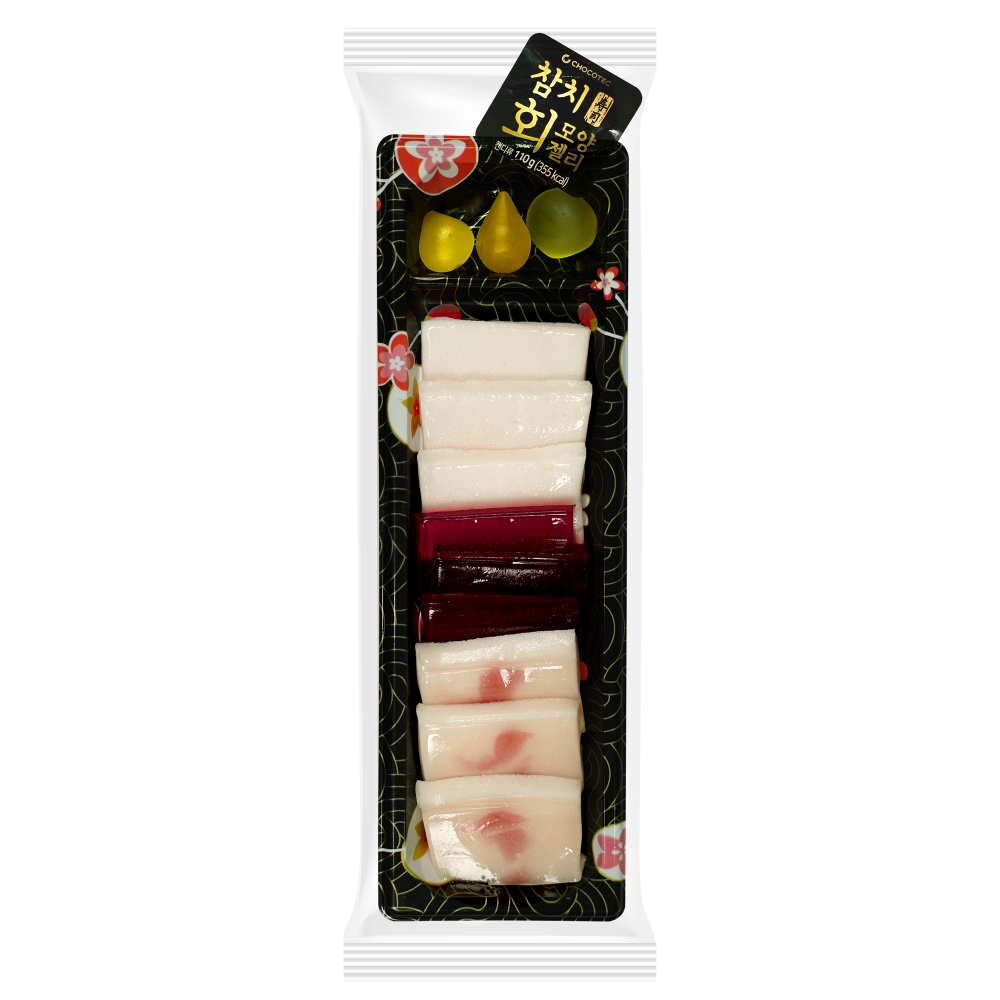 세븐일레븐이 이번에 출시한 ‘참치회젤리(3800원)’는 참치회를 연상케 하는 외형으로 기획된 상품이다. 부위마다 딸기 맛, 복숭아 맛 등 여러 과일 맛을 즐길 수 있다.