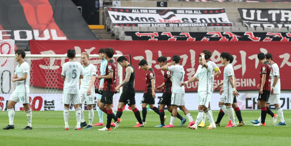 FC서울과 성남FC 선수들이 5월 31일 경기후 구장을 나가고 있다. 사진=뉴시스