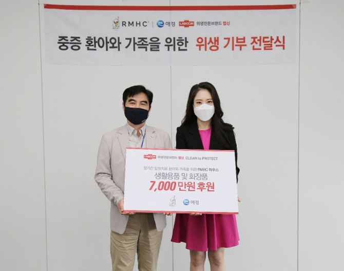 애경산업은 이 자리에서 로날드맥도날드하우스에 총 7000만 원 상당의 샴푸‧린스‧바디워시‧비누를 기부했다. 이에 더해 자사의 위생 전문 브랜드 ‘랩신’의 손 소독제와 핸드워시를 지원할 계획이다.