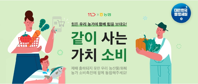 이미지 확대보기대한민국 동행세일은 코로나19 극복과 침체된 소비 활성화를 위해 기획됐다. 11번가는 지난 6월 26일부터 행사에 동참해 해양수산부, 중소벤처기업부, 서울시, 전라북도청, 농협 등과 협업해 약 800여 곳의 지역 판매자들의 온라인 판로 개척에 나섰다.