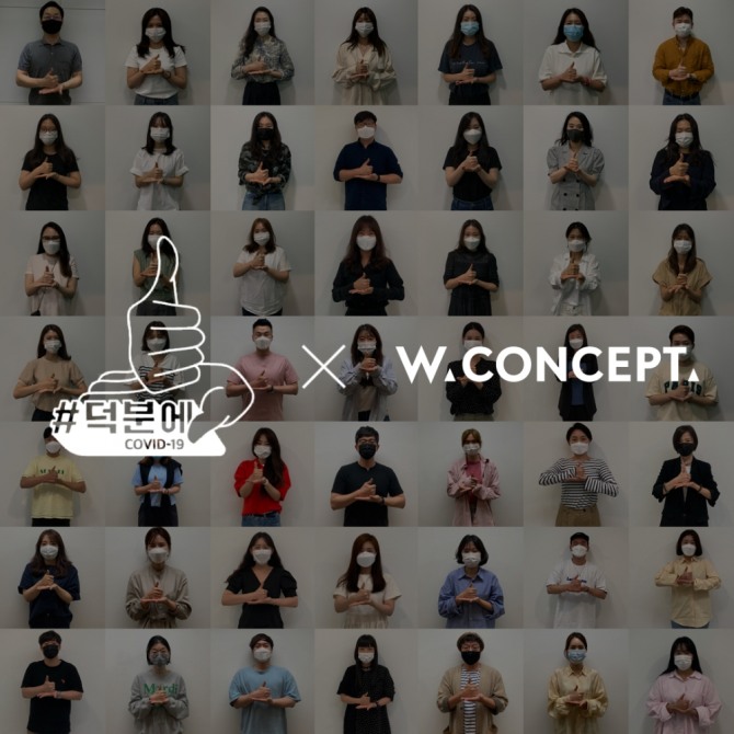 이미지 확대보기더블유컨셉코리아(대표 이은철)는 코로나19 극복을 위해 고생하는 의료진을 응원하는 ‘덕분에 챌린지’ 캠페인에 동참한다고 8일 밝혔다.