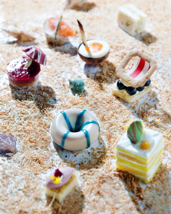 특히 스위트 셀렉션은 비치 체어 모양의 블루베리 밀푀유, 화이트 초콜릿 튜브 도넛, 패션 후르츠 젤리가 들어간 코코넛 판나코타, 파라솔 모양의 초콜릿으로 장식한 산딸기 브르통, 망고 쇼트케이크 등 신선한 제철 과일을 활용한 디저트들로 구성됐다.