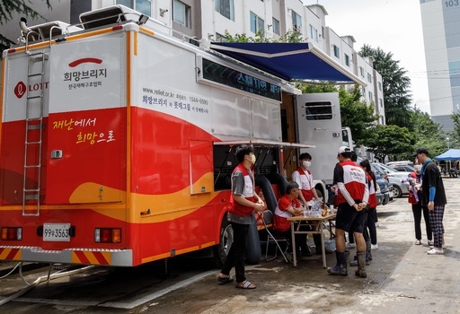 CJ제일제당은 최근 폭우 피해 복구에 한창인 자원봉사자들을 위해 '햇반'과 '햇반컵반' 등 가정간편식(HMR), '비비고 김치'를 비롯한 반찬과 간식 1만 2000개를 내놨다. 아워홈 역시 전국재해구호협회에 '아워홈 지리산수' 2만 병을 보냈다.