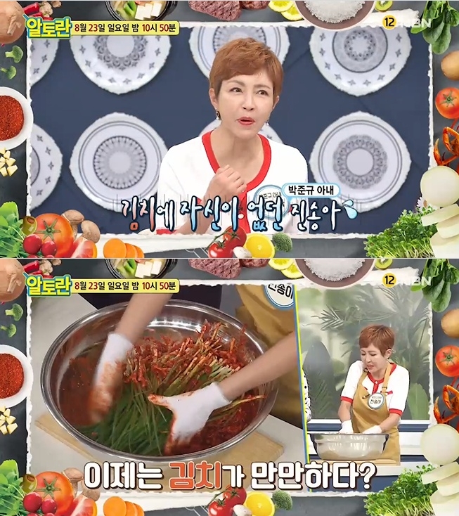 진송아씨는 양식 조리사 자격증 소유자임에도 불구하고 "김치는 감히 범접할 수 없는 영역"이라고 너스레를 떨어 웃음을 선사했다.