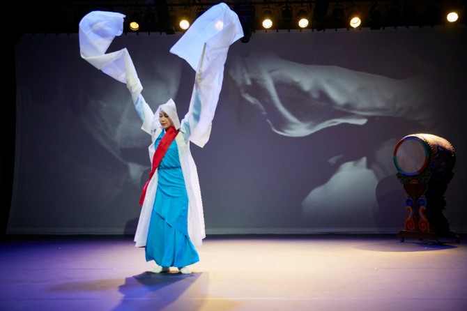 이미지 확대보기<선비학춤>; 도도한 선비의 곧은 절개와 선조의 정신문화유산을 이해해야 하는 춤이다. 학이 날고 선비가 춤추는 것은 동일시되며 증첩적 의미를 지닌다. 학의 맑고 깨끗한 느낌과 선비 정신이 동시에 몸짓으로 표현된다. 학은 고귀한 것을 상징하며 선비가 평상시에 입던 학창의는 학의 흰 몸통과 검정 머리 모양을 본 떠 만든 옷으로 자연과 조화를 이루면서 고고하고 호방한 선비의 격조를 보여준다. <선비학춤>은 자유인의 여유와 지성인의 신비감이 요구된다.