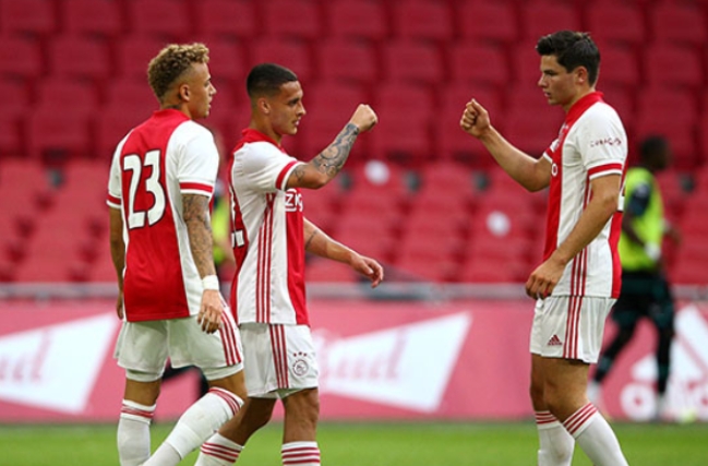 이미지 확대보기아약스가 VVV 펜로전에서 에레디비시 신기록인 13골을 터뜨려 승리했다. 현지시각 24일 열린 에레디비시 6라운드에서 아약스는 적지에서 VVV 펜로와 맞붙었다. 지금까지 4승 1패로 리그 2위를 달리고 있는 아약스는 전반 12분 위르겐 에켈렌캄프가 선제골을 터뜨린 데 이어 라시나 트라오레가 17분, 32분으로 네트를 흔들었고 두산 타디치도 전반 종료 직전 추가 골을 넣으며 전반에만 4골 차로 앞서나갔다.