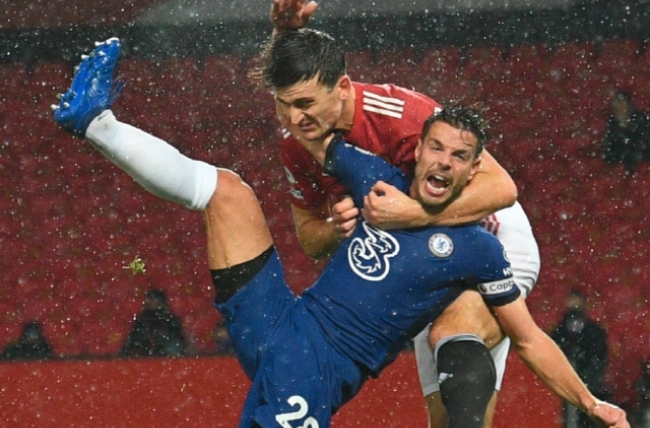 이미지 확대보기맨체스터 유나이티드는 한국시각 25일 프리미어리그 7라운드에서 첼시와 만나 0-0으로 비겼다. 이 경기에 대해 영국 언론들은 잉글랜드 대표 수비수 해리 매과이어가 상대 선수에 대해 실시한 ‘프로레슬링 급 헤드록’을 VAR가 무시했다며 관심을 보이고 있다.