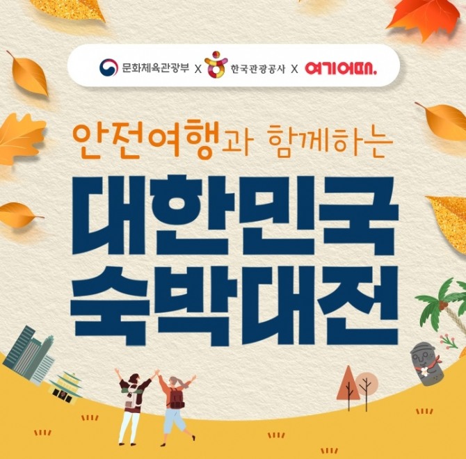 이미지 확대보기대한민국 숙박대전은 전 국민에게 최대 4만 원의 숙박 할인쿠폰을 지원하는 캠페인이다. 쿠폰은 경제를 활성화하기 위해 올 가을, 겨울 여행에 사용할 수 있다.