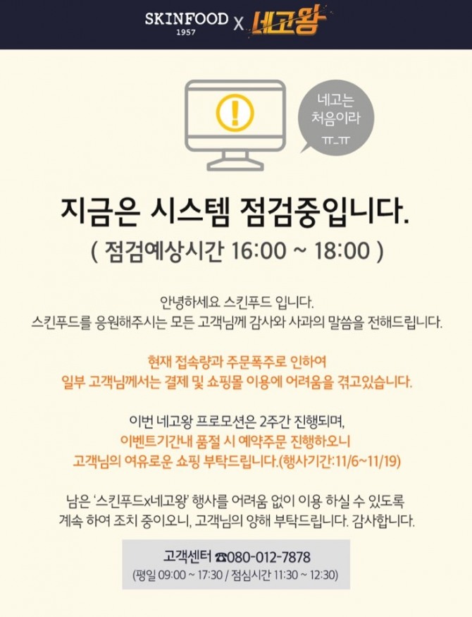 여기에 네고왕 마케팅이 초반 좋은 반응을 얻으면서 반전을 노리고 있다. 지난 6일 공개된 방송에서 유근직 대표는 2주 동안 전 제품 7000원 구매 쿠폰 3장 발행에 합의했다. 행사 기간은 19일까지이며 쿠폰 3장 모두 사용 시 무료배송한다. 같은 기간 구매 고객 2만 명에게 베스트 10종 샘플 세트 선착순 증정하고, ‘스킨푸드 네고왕 세트’ 5000개도 한정 판매한다.
