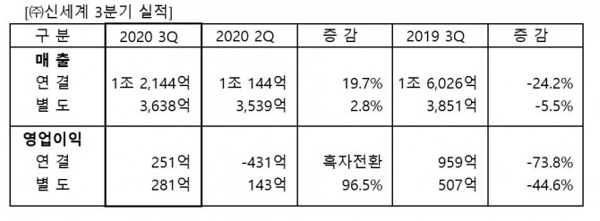 신세계백화점의 3분기 실적은 매출 3638억 원으로 나타났다. 이는 지난해 같은 기간 대비 5.5% 감소하고, 2분기 대비 2.8% 신장한 수치로 안정적인 매출 회복국면으로 접어들었음을 시사한다.