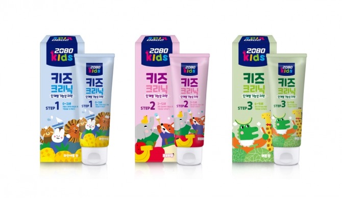 이미지 확대보기2080 키즈크리닉 치약은 ▲치약을 삼키기 쉬운 0~2세용 ‘1스텝치약’ ▲치열 형성이 시작되는 3~5세용 ‘2스텝치약’ ▲영구치가 나기 시작하는 6~9세용 ‘3스텝치약’으로 출시돼 나이대별 구강 발달에 맞춰 선택할 수 있다.