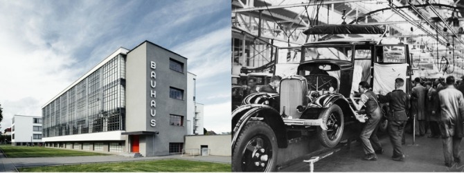 산업디자인으로서의 미술 사조는 1919년 발터 그로피우스(Walter Adolph Georg Gropius)가 설립한 바우하우스(Staatliches Bauhaus)에서 본격적인 태동에 이르게 된다. 건축을 중심으로 조형 분야 전반을 통합하여 다양한 산업 분야에 커다란 영향을 주게 된 긍정적인 평가도 있지만 그로피우스 이후의 바우하우스는 기하학적 형상보다 기능주의를 추구한 나머지 재료와 구조, 기술에 의해 형태가 결정되어 조형 중심의 디자인 교육과는 다소 거리가 있었다.