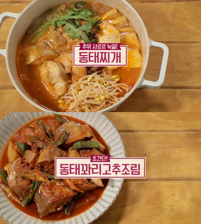 겨을 제철 식품 동태로 만든 동태찌개와 동태꽈리조추조림 레시피, 겨울철 면역력을 높여줄 견과류조림 레시피는 다음과 같다.
