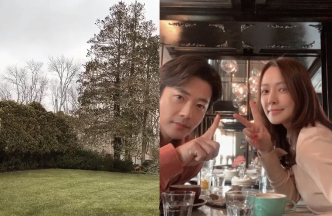 이날 공개된 영상에는 손태영이 자택 마당에 눈이 내려서 쌓이는 모습을 담았다. 특히 깔끔하게 정돈된 잔디밭과 키 큰 나무가 서 있는 드넓은 정원이 눈길을 사로잡고 있다.