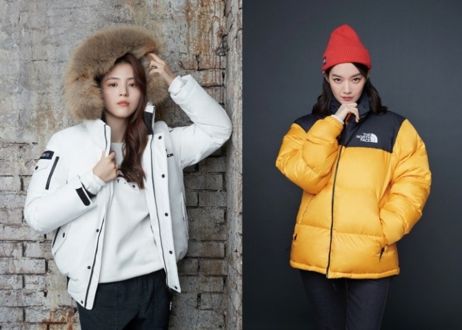 아이더의 '스투키' 제품 화보(왼쪽부터)와 노스페이스 '1996 에코 눕시 재킷' 화보. 사진=각사 제공
