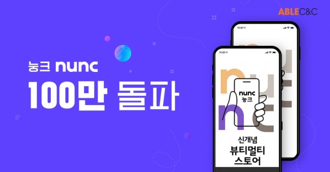 이미지 확대보기에이블씨엔씨는 2020년 12월 기준 눙크의 누적 다운로드 수가 108만 회를 기록했다고 5일 밝혔다. 눙크는 당초 미샤의 브랜드숍 앱이었던 것을 2020년 4월 멀티브랜드 앱으로 재단장한 것으로 이번 기록은 론칭 9개월 만의 쾌거다.