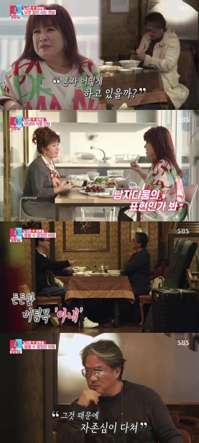 특히 이무송은 "노사연에게 죄책감을 느낀다. 나를 안 만났으면 항상 예쁨 받을 수 있었는데. 연하에, 고집 센 나를 만나서"라며 감춰둔 속내를 내비쳤다. 이어 "나도 열심히 돈 버는데 집사람이 나보다 조금 더 번다. 그러다 보니 자존심이 다친다"고 말하기도 했다.