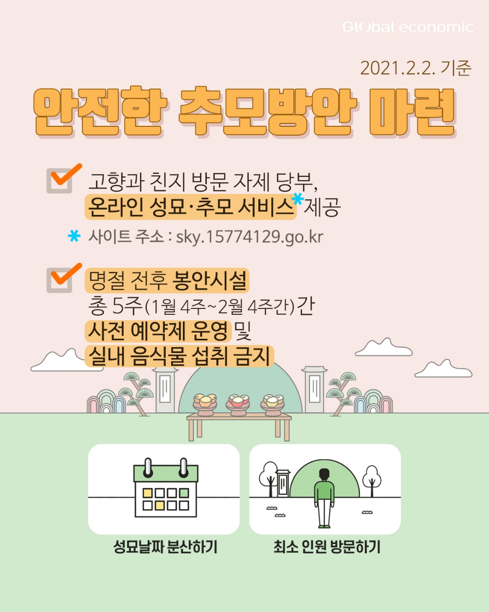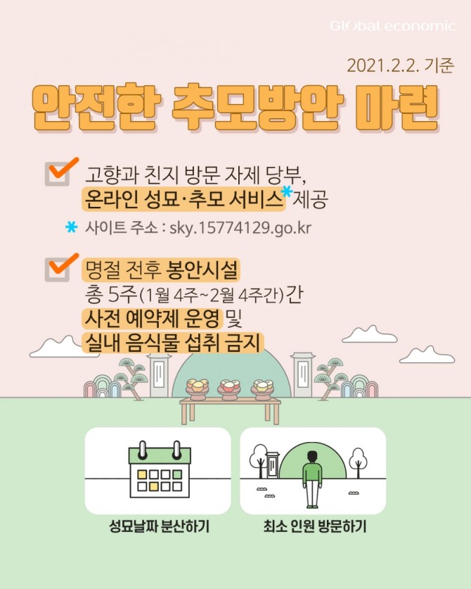 - 고향과 친지 방문 자제 당부, 온라인 성묘·추모 서비스(sky.15774129.go.kr) 제공