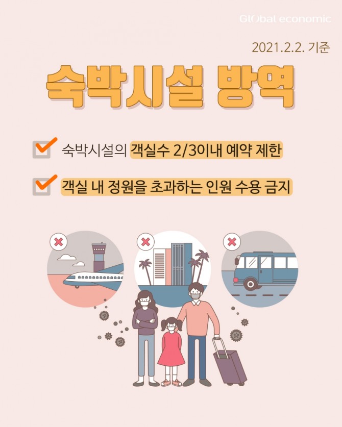 - 숙박시설의 객실수 2/3이내 예약 제한