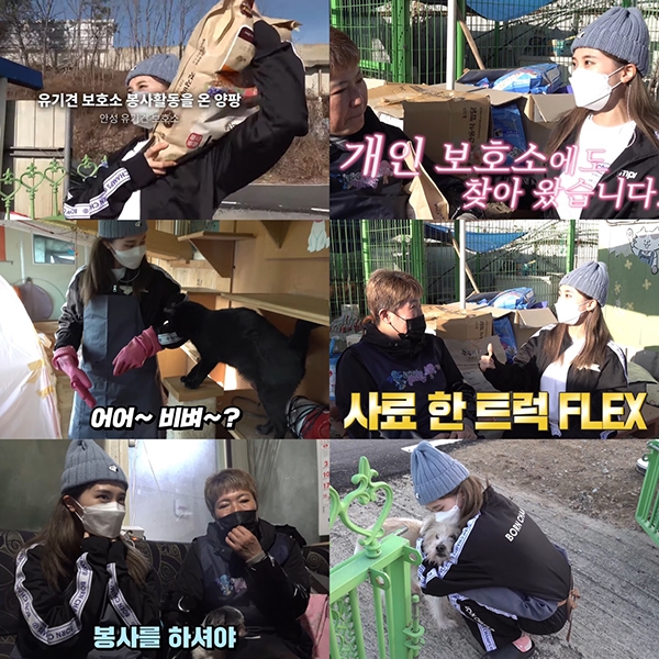 이미지 확대보기양팡은 지난 3일 자신의 유튜브 채널에 '피츠야 달려!'라는 제목의 영상을 공개했다. 공개된 영상 속에서 양팡은 사료 포대를 짊어지고, 개인 유기 동물 보호소를 찾아갔다. 보호소를 운영하는 '강엄마'와 이야기를 나누고 봉사 활동에 참여했다.