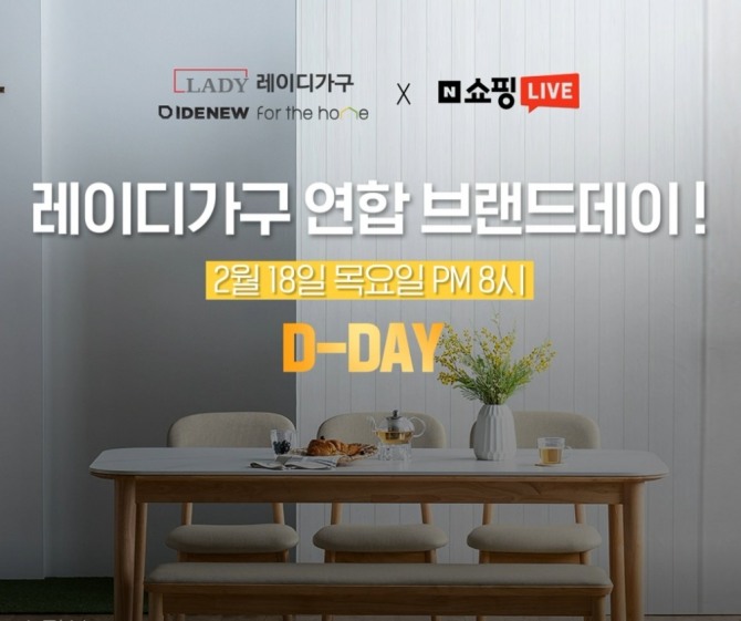 이날 오후 8시에는 레이디가구 판교 쇼룸을 배경으로 네이버 쇼핑라이브 생방송이 전개된다.