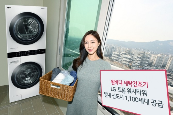 이미지 확대보기11일 LG전자에 따르면 최근 경기도 남양주시 별내 신도시에서 입주를 시작한 주거형 생활숙박시설 1100세대 모두에 트롬 워시타워를 공급했다. LG전자가 워시타워와 관련해 대규모로 B2B 공급한 건 이번이 처음이다.