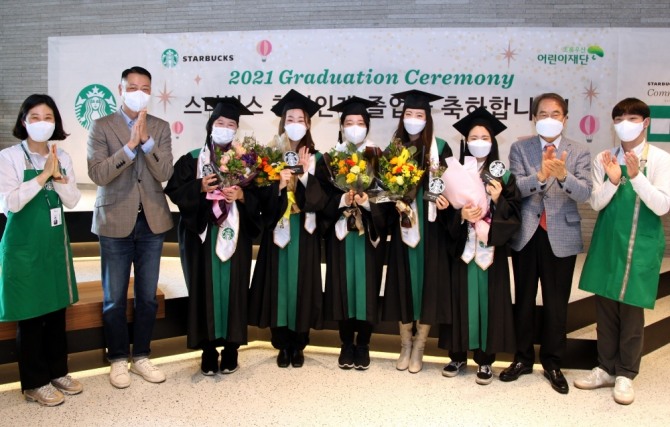 아울러, 지난 10일에는 올해 2월 졸업을 맞이한 6명의 스타벅스 청년인재를 축하하는 자리가 마련됐다. 스타벅스 송호섭 대표이사와 초록우산 어린이재단 이제훈 회장이 참석해 사회로 진출하는 청년인재들의 미래를 응원했으며, 선후배 청년인재들이 온라인으로 함께 축하를 전했다.