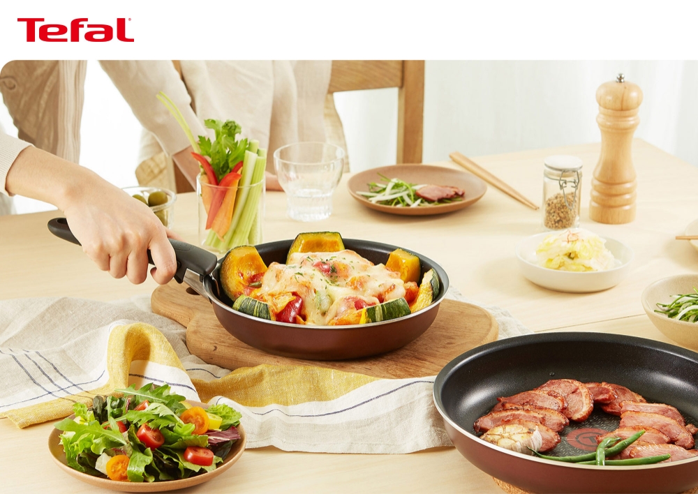 세트 상품은 22㎝·26㎝ 프라이팬과 테팔의 특허받은 오리지널 10년 안심 손잡이를 포함한다. 단품은 26㎝ 볶음용 팬과 28㎝ 프라이팬 2종으로 출시됐다.