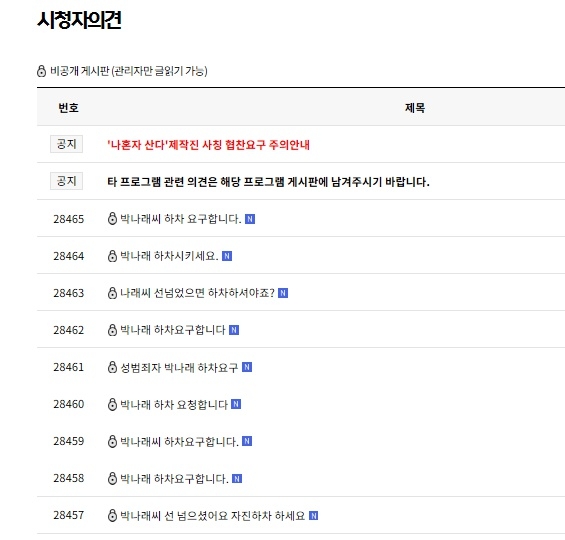 논란이 불거진 후 박나래가 MC를 맡고 있는 MBC 예능 '나혼자 산다'의 시청자 게시판은 그녀의 하차를 요구하는 글들이 넘쳐나고 있다.