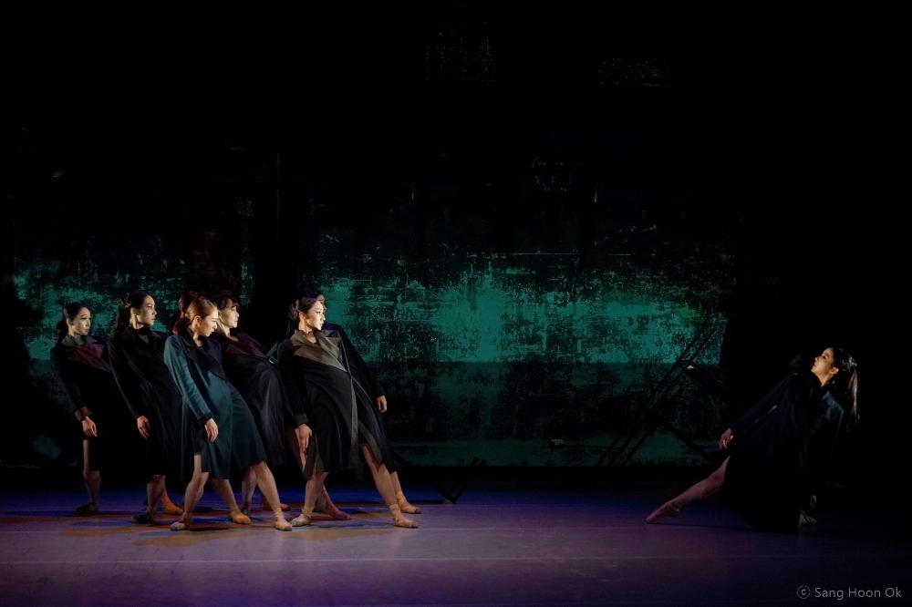 제3장; ‘상실의 도시’, 생명 존중과 인간성이 상실된 텅 빈 도시 속, 어둠 속에서 인간들은 죽음에 이르는 감염의 공포에 전율하며 서로 연민을 느낀다. 미나리처럼 휘어져 가며, 감정이 메마른 몸짓으로 분수대의 물줄기처럼 일직선으로 우뚝 설 당당한 인간들의 모습과 노 마스크 시대의 선언을 기다린다. 코로나바이러스로 폐쇄된 성이 치료 약이 발견되면, 심학규처럼 눈을 뜰 수 있단 말인가? 신판 발레 ‘심청전’의 상상은 성문을 열고 ‘자유’라는 틀을 확장한다.