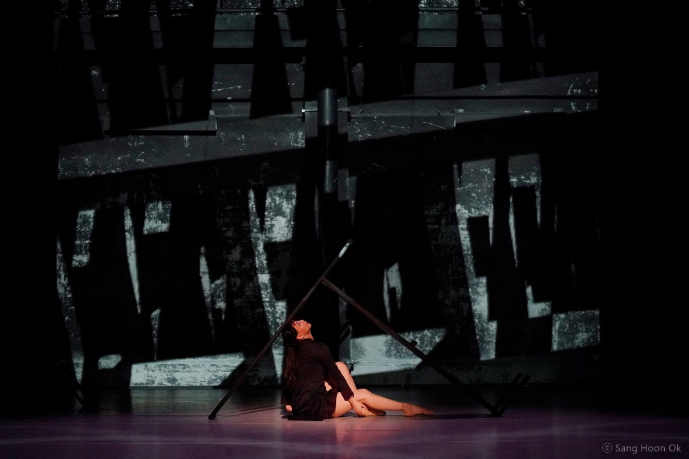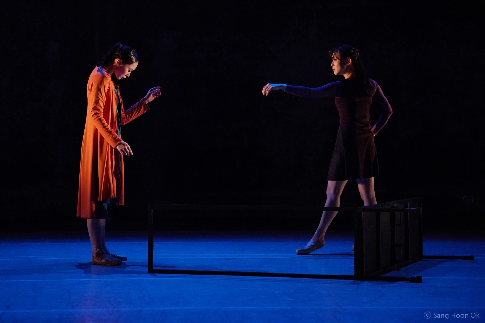이미지 확대보기「보이지 않는 것들」은 너와 나를 뺀 다수의 입장을 조망한다. 절연이 아니라 변주를 바라는 동양적 사고를 가변의 벤치가 감당해낸다. 이지혜의 독무는 다양한 움직임의 수사로써 군무와 차별화되고 적절한 진법 운용은 변동의 미학을 보여준다. 세 겹의 코트가 벗겨지고, 두려움은 분산된다. 텅 빈 버스나 지하철 영상은 공허의 의미를 확장한다. 의상을 통한 심리변화와 바른 의식 고양은 두 여인의 긴장감을 이끄는 움직임에서 드러난다. 춤은 모든 것을 씻어내는 빗소리로 마무리된다. 안무가 이지혜는 교훈적 서사로 교육적 성과를 달성했다.