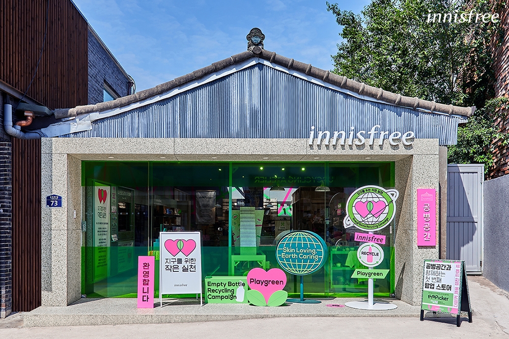 뉴 공병공간에는 ‘에코컨셔스 뷰티존’이 마련돼 있어 제품을 만드는 순간부터 패키징까지 지속 가능성을 위한 노력이 담긴 이니스프리의 제품을 한눈에 찾아볼 수 있도록 했다. 더피커 브랜드 팝업스토어와 같이 지속 가능 라이프스타일을 추구하는 다양한 전시와 팝업스토어도 시즌별로 운영될 예정이다.