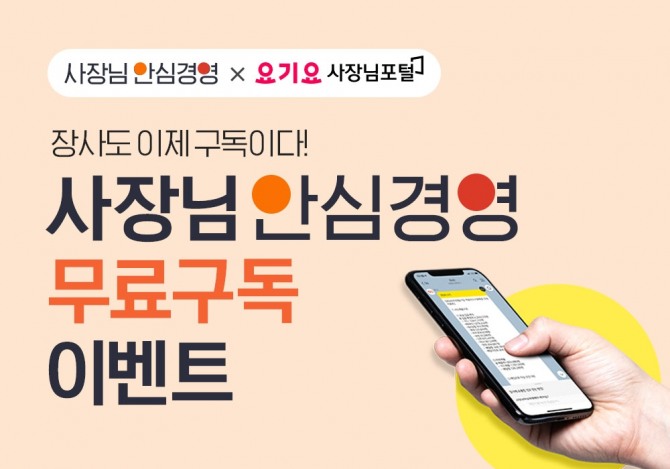 사장님안심경영 구독서비스는 프로모션 기간 동안 요기요 사장님이라면 누구나 무료 이용 가능하며 '사장님포털' 내 이벤트 배너와 페이지를 통해 내달 26일까지 신청할 수 있다.