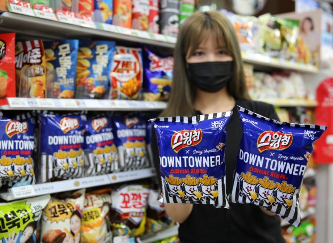 3개월 이상 이어진 상품 개발 과정에서 스윙칩 특유의 물결 굴곡이 비법 양념을 잘 잡아주는 등 가장 절묘한 조화를 이룬다고 판단한 GS25가 협업을 제안했고, 오리온이 이를 받아들이며 다운타우너X스윙칩이 최종 완성됐다.
