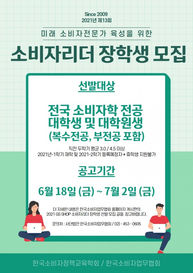 정호섭 GS리테일 미디어지원센터장은 “소비자리더 장학사업이 소비자 전문가를 꿈꾸는 학생들에게 멋진 응원과 기회가 되기를 바란다”면서 “앞으로도 기업의 최고 자산인 소비자의 이익과 복지 증진 위해 지원을 아끼지 않고 강화해 나갈 것”이라고 말했다.