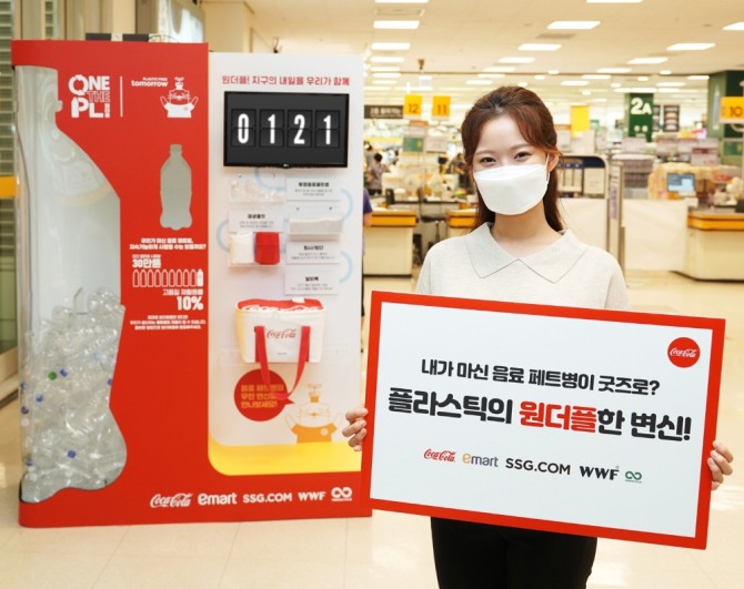 이미지 확대보기한국 코카-콜라가 오는 20일까지 이마트 성수점에서 ‘한 번 더 사용되는 플라스틱: 원더플 캠페인(이하 원더플 캠페인)’ 시즌2 체험 부스를 운영한다고 15일 밝혔다. 여기에는 더 많은 소비자들이 사용된 투명 음료 페트병의 자원순환을 경험할 수 있도록 하는 취지가 담겨 있다.