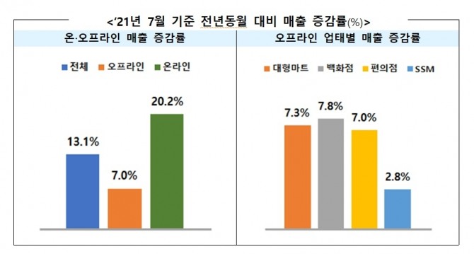 이미지 확대보기산업통상자원부는 26일 '2021년 7월 주요 유통업체 매출동향'에서 이같이 밝혔다.