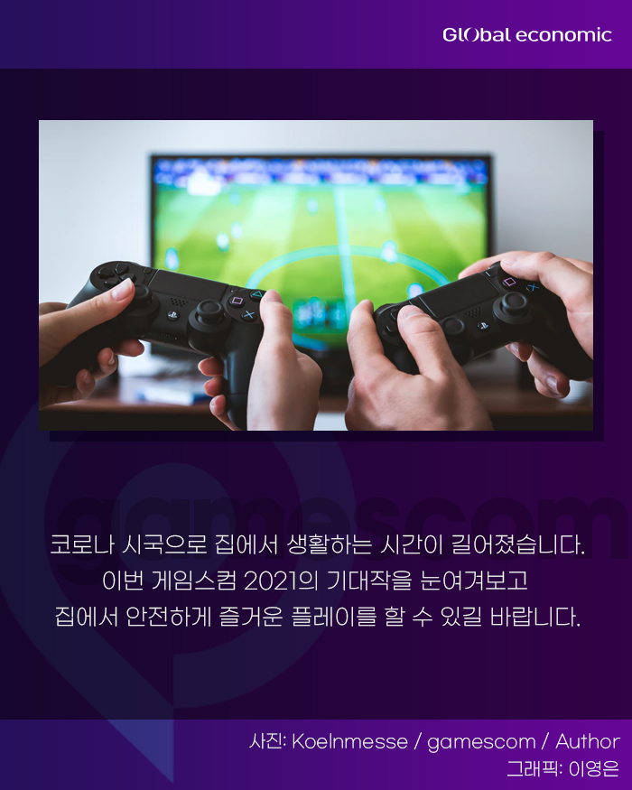 코로나 시국으로집에서 생활하는 시간이 길어졌습니다. 이번 게임스컴 2021의 기대작을 눈여겨 보고 집에서 안전하게 즐거운 플레이를 할 수 있길 바랍니다.