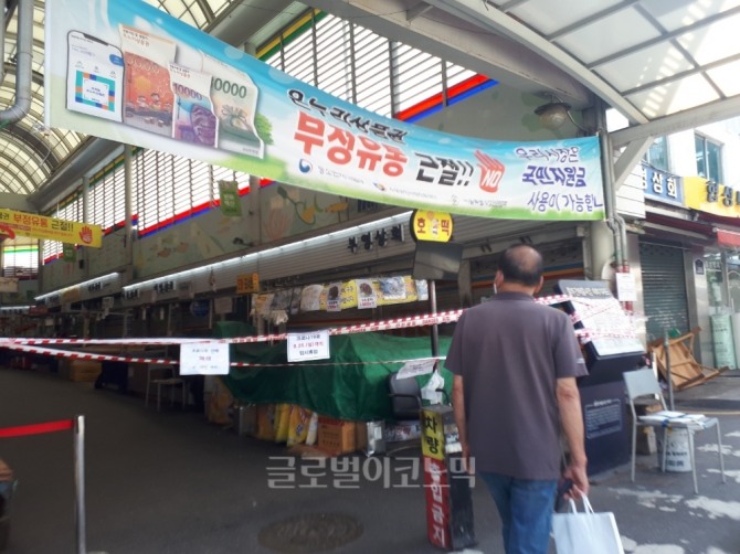 중부시장도 지난 23일 오후를 기점으로 상인들에게 서울시의 임시휴업 행정명령을 알리고 출입통제를 시작했다.