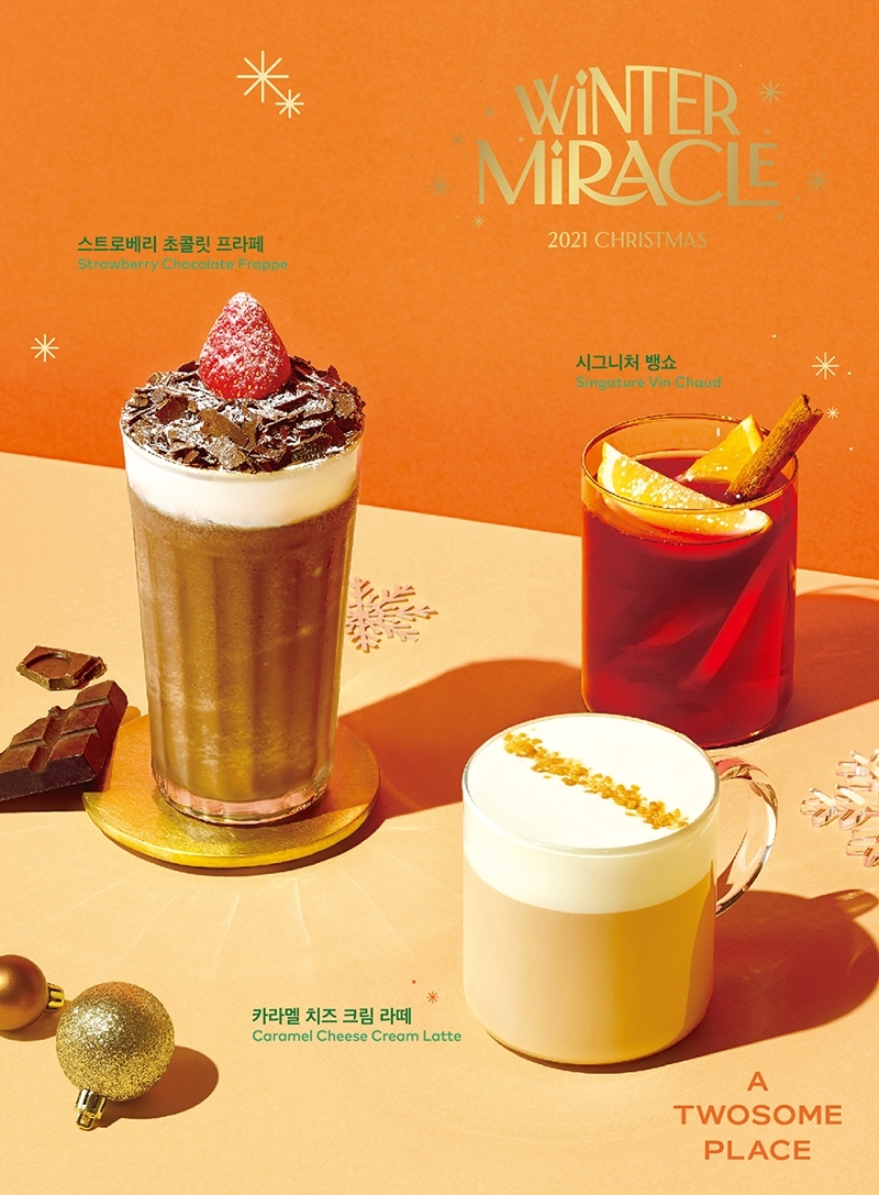 겨울 시즌 음료로는 ‘스트로베리 초콜릿 프라페’ ‘시그니처 뱅쇼’ ‘캐러멜 치즈 크림 라떼’ ‘투썸 핸드드립 커피 윈터블렌드’ ‘투썸 에이리스트 커피북’ 등이 출시됐다.