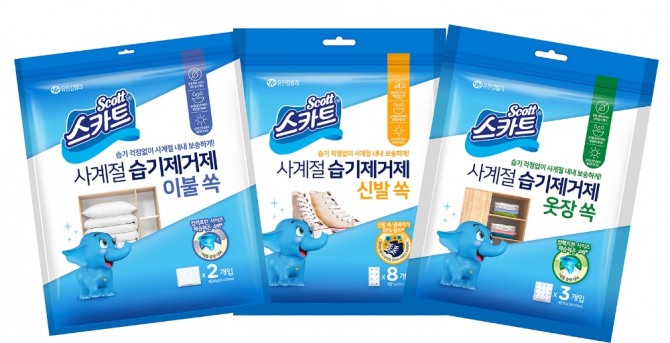 신제품은 유한킴벌리의 집안관리용품 브랜드 스카트 제품으로 ‘사계절 습기제거제’ 3종이다.