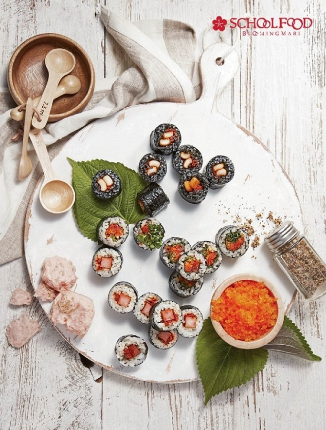 스쿨푸드의 ‘마리’는 꼬마김밥 형태로 만들어져 누구나 부담 없이 즐길 수 있는 메뉴로, 2000년대 초반부터 지금까지 효자 품목으로 자리 잡고 있다. 스패니쉬 오징어 먹물마리에 사용되는 오징어먹물은 스페인산 최고급인데, 여기에는 건강하고 좋은 재료만을 추구하는 스쿨푸드만의 신념이 반영됐다.